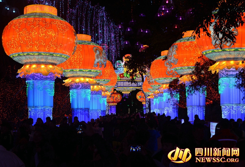 “富贵中华”灯组 四川新闻网自贡2月21日讯 (记者 徐昭磊 摄影报道)记者近日从自贡灯会指挥部获悉,在春节初一到初六,第24届自贡国际恐龙灯会已经累计接待来自全国各地的观灯游客42.15余万人,同比增长5.38%,尤其正月初三,园内观灯人次达8万之多,创历史新高。