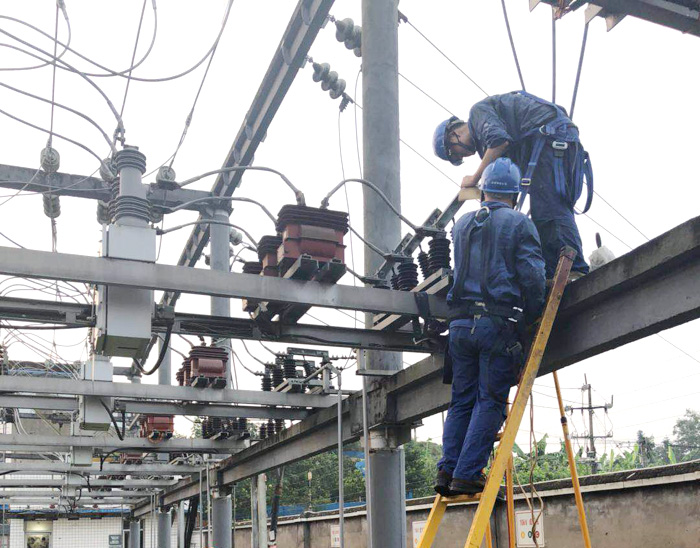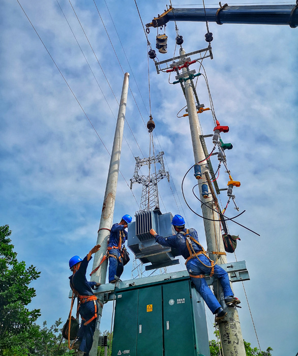 四川新闻网自贡7月23日讯(候键 周运 黄利平 廖云)近日,随着气温的攀升,电网负荷不断增大。7月19日,自贡气温达到36摄氏度,自贡电网最大负荷为92.322万千瓦,电网日电量达1679.924万千瓦时,全网最高负荷已超过90万。针对迎峰度夏用电高峰期,国网自贡供电公司提前谋划,各专业联动,做好电网安全预控措施、加强设备日常巡视、对设备进行红外测温、做好日常应急抢修等系列工作,保障设备安全稳定运行,保证供电安全可靠,竭诚为广大电力客户提供优质服务。 7月20日,变电检修室检修人员凌晨5点出发,前往35千伏成佳变电站,对10千伏成石线9123刀闸发热缺陷进行处理。 7月19日,为了自贡市卫生康复中心学院新校区尽早投入运营,配电运检室在高温下奋战。电力工人顶着高温,对卫康院10千伏代唐线卫生康复中心施工变压器支线进行迁移和电缆搭头工作。 7月18日22点50分,沿滩客户服务分中心值班室接到电话报修,远程花园小区铃配电箱发出‘砰’的一声巨响,目前还没有停电。生产值班人员立即赶赴现场查看故障情况,发现远程花园分支箱A相电缆肘头被击穿,虽没有造成停电,但故障可能引发线路接地或箱体带电,严重危及线路及过往行人安全。检修人员随后赶到事故现场,设置安全隔离区并制定抢修方案,现场监测设备运行两个多小时。凌晨1点,待气温降低、居民入睡后,检修工人经过约3小时的紧张抢修,于19日凌晨3点35分将故障处理完毕,恢复送电。 7月18日晚,因用电负荷过大,仲权镇银河1组台区总保及进出线烧坏。为保障该台区用户及时用电,仲权供电所迅速组织员工做好临时供电工作。19日一大早,供电所员工彻底处理该台区总保及进出线故障,在30摄氏度高温下,工作人员汗水成串滴落,打湿衣衫,汇成一片。 |