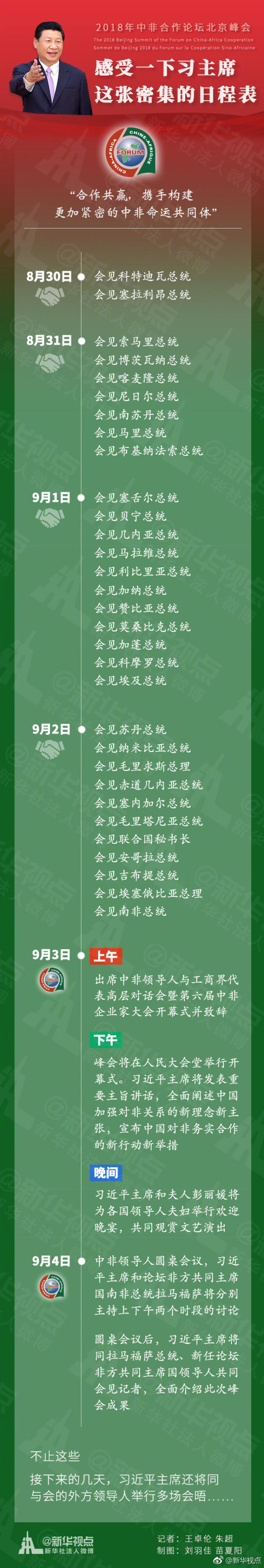 3日,中非合作论坛北京峰会将开幕,峰会还没开始的前4天,习近平主席进行的会晤已经多达31场。日程到底有多密集?看图感受一下