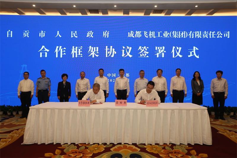 四川新闻网消息(李华 王垚秋 刘丽媛)9月21日,自贡市人民政府与航空工业成都飞机工业(集团)有限责任公司(以下简称成飞)在成都签署合作框架协议,携手推动无人机产业高质量发展,为自贡全面融入成渝地区双城经济圈建设、推动南翼跨越、再造产业自贡注入强大动力,也为促进无人机产业链上下游企业协同共兴、进一步提升四川省航空产业位势能级增添新动能。省政府副秘书长陈书平,市委书记范波,市委副书记、市长何树平,成飞党委书记、董事长宋承志,成飞党委副书记、总经理蒋敏等出席。