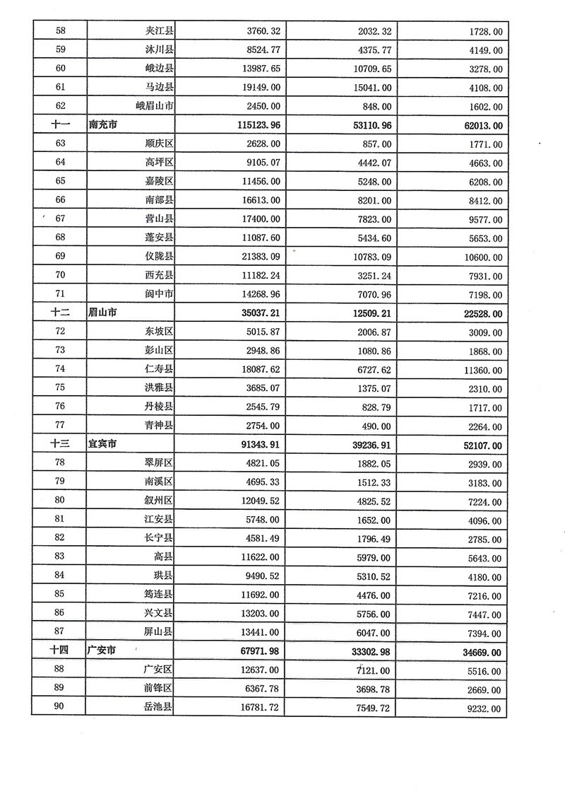 快来看看你的家乡分配到多少资金?(图据四川省乡村振兴局)