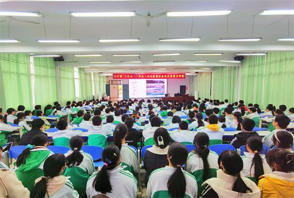 3月8日、3月12日荣县法院环资庭庭长及旭阳法庭庭长分别在荣县旭阳镇富北学校、富西学校以“环保与法治:初中学生的责任与行动”为主题开展法治宣讲活动,并现场发放《环境保护法》《水污染防治法》等资料,将环保理念送入校园。