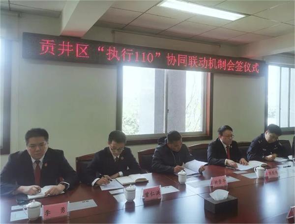 四川新闻网消息 为深入推进“切实解决执行难”、提升执行工作内协外联办案效能式,3月21日,贡井区法院与区政法委、区检察院、区公安分局在贡井法院举行执行联动机制会签仪式。各方共同签署《关于建立“执行110”协同联动机制的工作意见》》(下称《工作意见》),这标志着自贡市首个“执行110”协同联动机制正式启动。