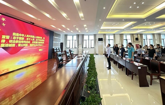 新任人民陪审员庄严宣誓,随后进行了人民陪审员培训会。自流井区法院刑事审判庭庭长、副庭长分别围绕《人民陪审员法》《民法典》《刑法》对新任人民陪审员进行了培训,希望全体新任人民陪审员要加强学习,不断提高自身素质,适应人民陪审员工作需要;要积极参与案件审理,处理好人民陪审员工作与本职工作的关系,确保审判工作顺利进行;要坚持公平正义,坚守公正廉洁,自觉维护法律尊严,依法依规履职,树立人民陪审员的良好形象。