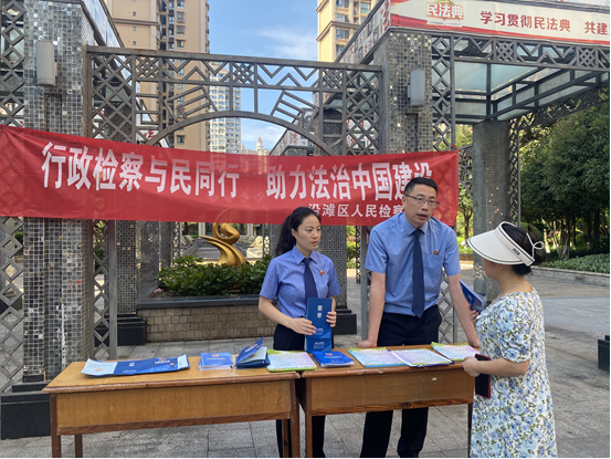 四川新闻网消息 为响应最高检第五届新时代检察宣传周活动,进一步贯彻落实“检护民生”专项行动,增进人民群众对行政检察工作的了解、认同和支持。7月12日,沿滩区人民检察院干警走进社区,开展了以“行政检察与民同行,助力法治中国建设”为主题的法治宣传活动。
