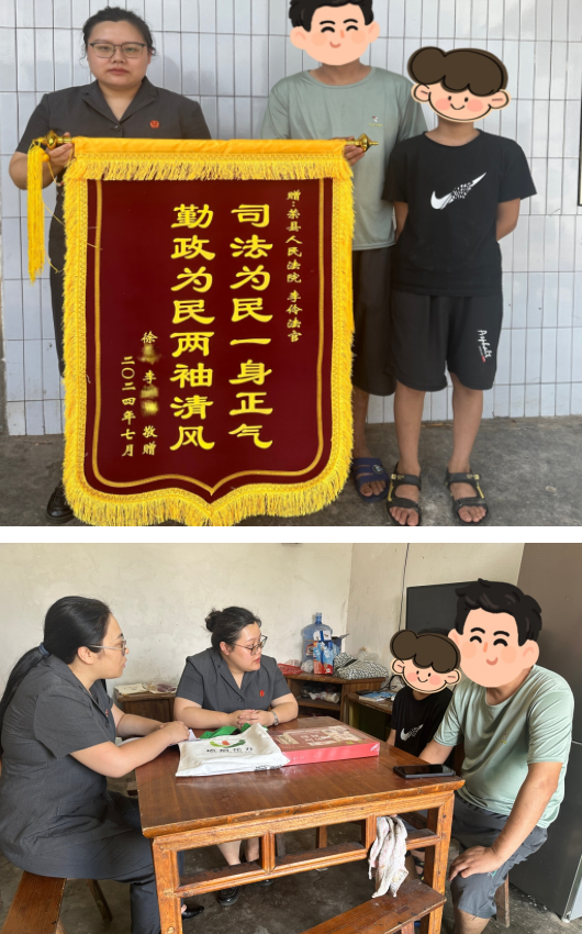 暑假期间,干警们再次前往小小徐家中回访,关心他的学习情况,离开时他害羞地将一封感谢信送给了法官阿姨,小小徐的父亲也拿出了一面锦旗,送给未成年人与家事案件审判庭法官。
