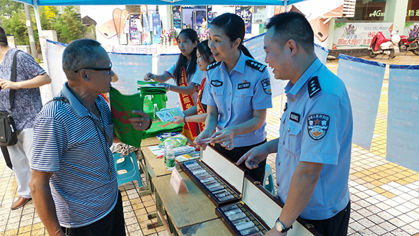 同时,派出所民警深入旭川中学、田家炳中学,自贡市污水处理厂,席草田社区、杨家坝社区等地向学生、企业职工、社区居民中进行毒品相关知识的宣传、讲解。期间,共设宣传点10个,出动警力和党政干部人数达350人次,为群众发放毒品知识、预防艾滋病知识资料30000余份,悬挂禁毒挂图500余幅,接受咨询达500余人次,接受教育人数达20000人次。 此次宣传教育活动,进一步提高了全民参与禁毒的意识,拒毒、防毒的能力得到明显提高,受到了辖区各界群众的广泛赞誉,禁毒宣传教育取得明显效果。 活动中,区政法委书记、区禁毒委主任李善鸿,区政府副区长、区公安分局局长秦琴亲临泰丰广场指导并参与宣传活动。 |