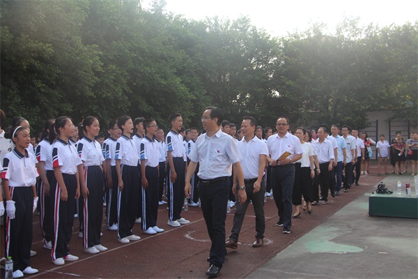 军训汇演 四川新闻网自贡9月6日讯(陈伯强)8月31日,自贡市解放路中学的操场上举行了一场精彩纷呈的军训汇报演出,为期5天的军训落下帷幕。此次军训对象为初一年级800余名新生。入校即军训,这是该学校的传统,旨在通过这样的集体活动,让新生们彼此熟悉的同时,借此组建班级,增强班级凝聚力,也是对孩子们精神风貌的一种培训。 烈日下,操场上一次次的队列集合,动作训练。老师们严格要求,同学们认真执行。他们的汗水挥洒在这片绿荫场上,最后浇灌出了军训汇演精彩的成果。 此次汇演,在校领导的检阅中开始,以校长胡代国为代表的解放路中学校领导团组成军训检阅小组,对每一个方阵一一巡视。同学们都拿出最饱满的精神状态接受检阅,为此次汇演开了一个好头。 每个班级依序上场展示自己这几天的训练成果。在全程脱离老师指挥的情况下,孩子们井然有序的进行着各种项目表演,声音洪亮、神情严肃、姿势标准,极好地展示了解中学子的精神风貌。骄阳似火,孩子们汗流浃背,但不管是台上还是台下,大家都没喊过一声苦,一声累。观摩的家长们也不由的被这群执着坚韧的孩子所感动。那一声声的欢呼和呐喊,是对他们最好的肯定! 相信这群经过烈日历练的孩子,会带着我们解中人自强不息,永争第一的精神,在今后的人生道路上继续挥洒汗水,不断铸就辉煌!
