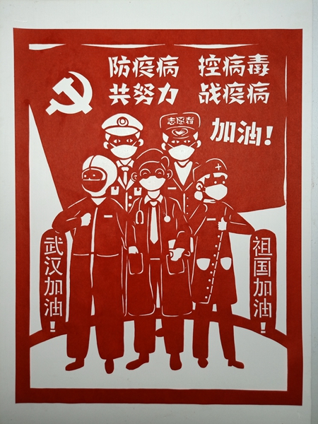 四川新闻网德阳2月13日讯(刘倩 文/图)抗击疫情,全民在行动。近日,德阳市旌阳区剪纸艺人陈智强利用业余时间创作了《功夫熊猫“战”新冠病毒》等6幅精致的剪纸作品,用这种鲜活生动的民间文艺形式宣传防疫知识,助力防控工作,为抗疫英雄加油、鼓劲。 “最有趣的是这幅《功夫熊猫“战”新冠病毒》,想用诙谐幽默的形式打破“宅家抗疫”的沉闷,突然脑海里闪过功夫熊猫的形象。”陈智强说,“我想赋予它本地特色,让它更生动、更有生命力,更能展现出德阳人打败病毒的决心和意志。” 陈智强是旌阳区中医院一名普通电工,自学剪纸10余年,去年春节前夕因为一张“小猪佩奇贺新年”的剪纸作品走红网络。“2003年非典的时候,因在外地工作没来得及贡献力量。这次抗击新冠肺炎疫情,想通过这种特殊的方式传播正能量,为大家加油打气,只要坚定信心、凝心聚力,就一定能打赢新冠肺炎疫情防控阻击战。”陈智强表示。 |