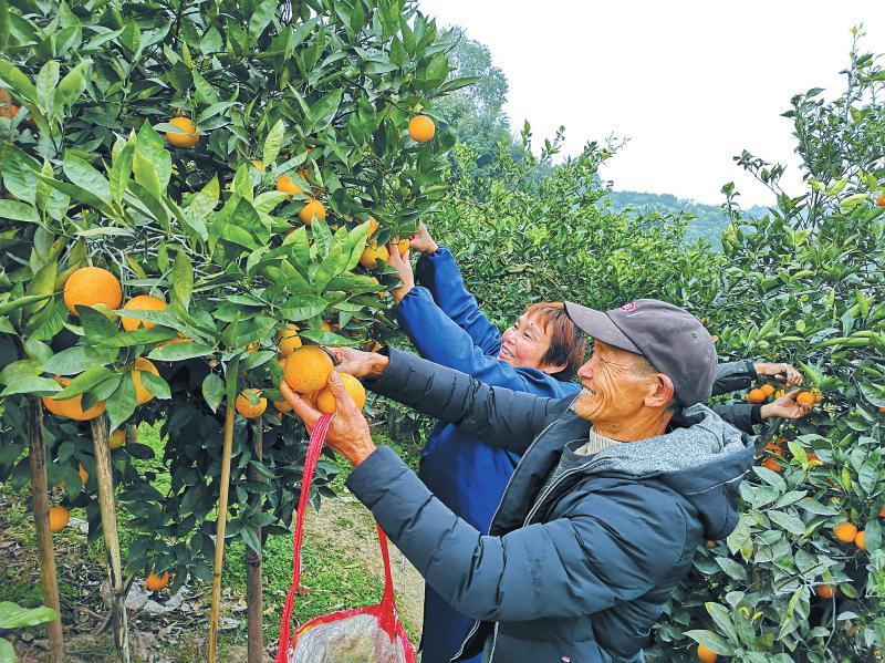 四川新闻网消息 1月16日上午,贡井区建设镇刘家村村民车建明正忙着给刚采摘下来的血橙包装、装车,销往全国各地。“背靠‘大树’好致富!在党委政府的带领下,种销都不用愁,收入一年比一年好。”说起今年的收成,车建明乐得合不拢嘴。 “背靠‘大树’好致富”——这句话如今成了刘家村村民的口头禅。 “真好吃!” 党委政府“搭台” 背靠“大树”好致富 过去一年,通过政府搭台,刘家村发挥塔罗科血橙专合社的技术优势,对全村集体经济成员开展技术培训近20次,不断吸纳村民进入塔罗科血橙专合社,发动村民高接换种爱媛38、大雅等优质杂交品种,并在播种、病虫害防治等环节指定专人帮助,带动该村及建设、旭东等周边村的2300余户村民加入柑橘产业种植队伍,实现柑橘产业提质增效。 背靠“大树”的红利远不止于此。眼下,位于刘家村的320吨冷库项目正在加紧建设,预计今年底建成投运,到时血橙就能够保鲜冷藏,解决农户因贮藏条件简陋而容易腐烂变质的问题,实现错季择机销售,为全村柑橘产业年收入翻番奠定基础。 冷库建设现场旁,就是去年建设镇党委、政府利用中省集体经济扶持资金100万元,为刘家村新建的特色水果初加工基地。生产线上,工人们正按照程序对柑桔进行清洗、打蜡、分拣。据介绍,该基地占地面积2.84亩,有水果初加工房、晾晒场、管理用房等,日处理柑橘能力近40吨,年处理能力约1万吨。通过自动清洗、分拣打蜡、精品包装提高附加值,能够为每亩柑橘地增加2000元收入。 村民开心摘果子 搭上“电商快车” 增收致富路更宽 在建设镇刘家村,村民陈莉梅还有一个身份——电商新农人。她依托自家的便利店搭建农村电商平台,成为当地血橙“搬运专家”,每年通过该平台外销血橙约100吨。 早在几年前,陈莉梅就在便利店建立了电商平台,销售自家的血橙。本村外出务工的年轻人,纷纷委托她帮忙料理家中血橙外销事宜。于是,陈莉梅就在便利店显眼位置张贴“水果收集点”海报,将本村大量的零散种植户的果实集结起来。她的便利店也由此成为刘家村的血橙外销物流(枢纽)站。相关物流公司还找上门来,提供专业包装箱和打包服务。