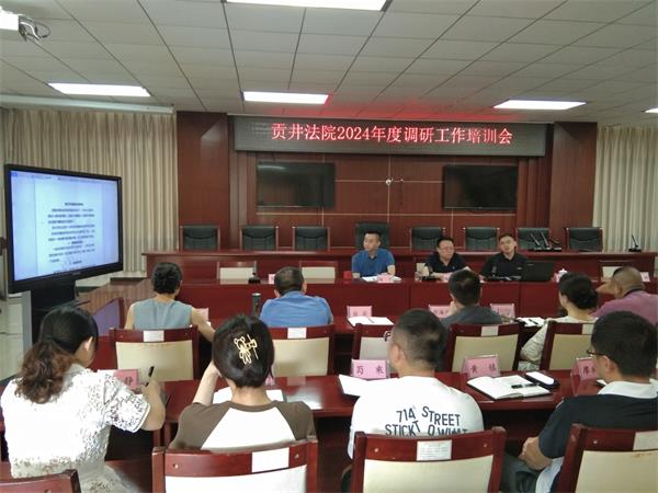 为进一步提升全院调研能力水平,近日,贡井法院开展2024年度调研工作培训会,自贡中院办公室副主任陈耀森受邀前来授课。贡井法院院领导、员额法官及法官助理参加培训。