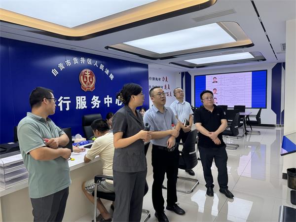 近日,威远法院党组成员、副院长尹华荣等一行人到贡井法院交流学习全流程无纸化办案工作,贡井法院党组副书记、常务副院长陈精伟及相关领导班子成员陪同参观交流。