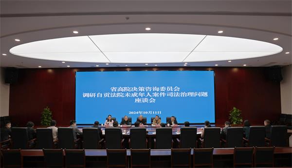 10月11日,调研组在自贡中院组织召开未成年人案件司法治理问题研究座谈会。座谈会上,市委政法委副书记林兵介绍了自贡政法系统“打击整治侵害未成年人违法犯罪专项行动”工作开展情况,自贡中院党组书记、院长曾学原就自贡法院未成年人司法保护工作进行了专题汇报,自流井区法院向调研组介绍了“反校园霸凌法官信箱”的运行情况。