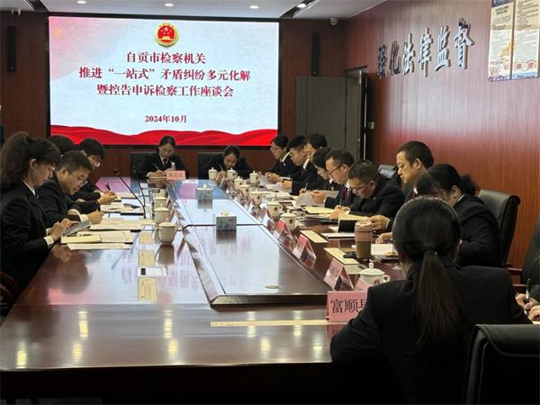 2024年10月14日,自贡市检察机关推进“一站式”矛盾纠纷多元化解暨控告申诉检察工作座谈会在沿滩区人民检察院召开。市院副检察长梁大锋出席会议。沿滩区检察院党组书记、检察长齐力、市院第八检察部部门负责人、干警、基层院分管领导及部门负责人参加会议。会议由市检察院检委会专委刘邑主持。