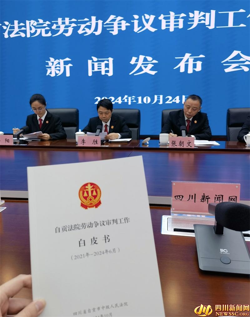 10月24日,自贡中院召开劳动争议审判工作新闻发布会。市中院党组成员、副院长李胜通报了2021年以来全市法院开展劳动争议审判工作和源头治理情况,市中院民一庭负责人介绍了此次发布的9件劳动争议典型案例,并发布《自贡法院劳动争议审判工作白皮书(2021年-2024年6月)》。