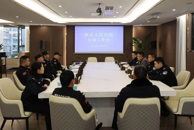 11月21日下午,荣县法院召开安保工作会,荣县法院党组成员、副院长杨勇军,司法警察大队全体司法警察及各派出法庭安保人员参加会议。