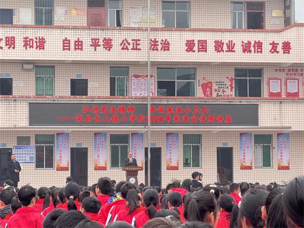 荣县法院干警走进荣县富北学校和长山镇中心小学,通过介绍宪法的地位、主要内容及重要意义,为全体师生开展宪法宣讲活动。树立宪法权威,展示法治力量。
